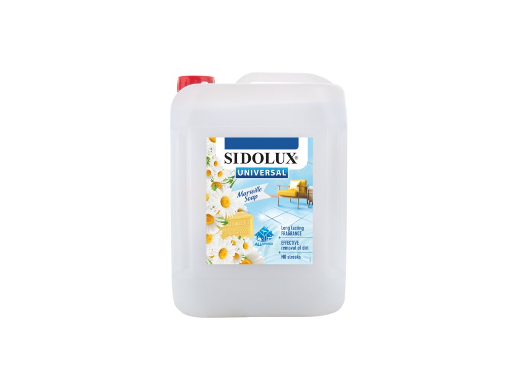 SIDOLUX UNIVERSAL MARSEILLE SOAP 1 l je čisticí prostředek vhodný na všechny omyvatelné povrchy. Velmi efektivně emulguje nečistoty díky systému Soda Power a snadněji je díky tomu odstraňuje z mytého povrchu. S prostředkem SIDOLUX UNIVERSAL je úklid snadný a příjemný díky vyjímečným vůním, které po úklidu nádherně provoní mytý prostor.